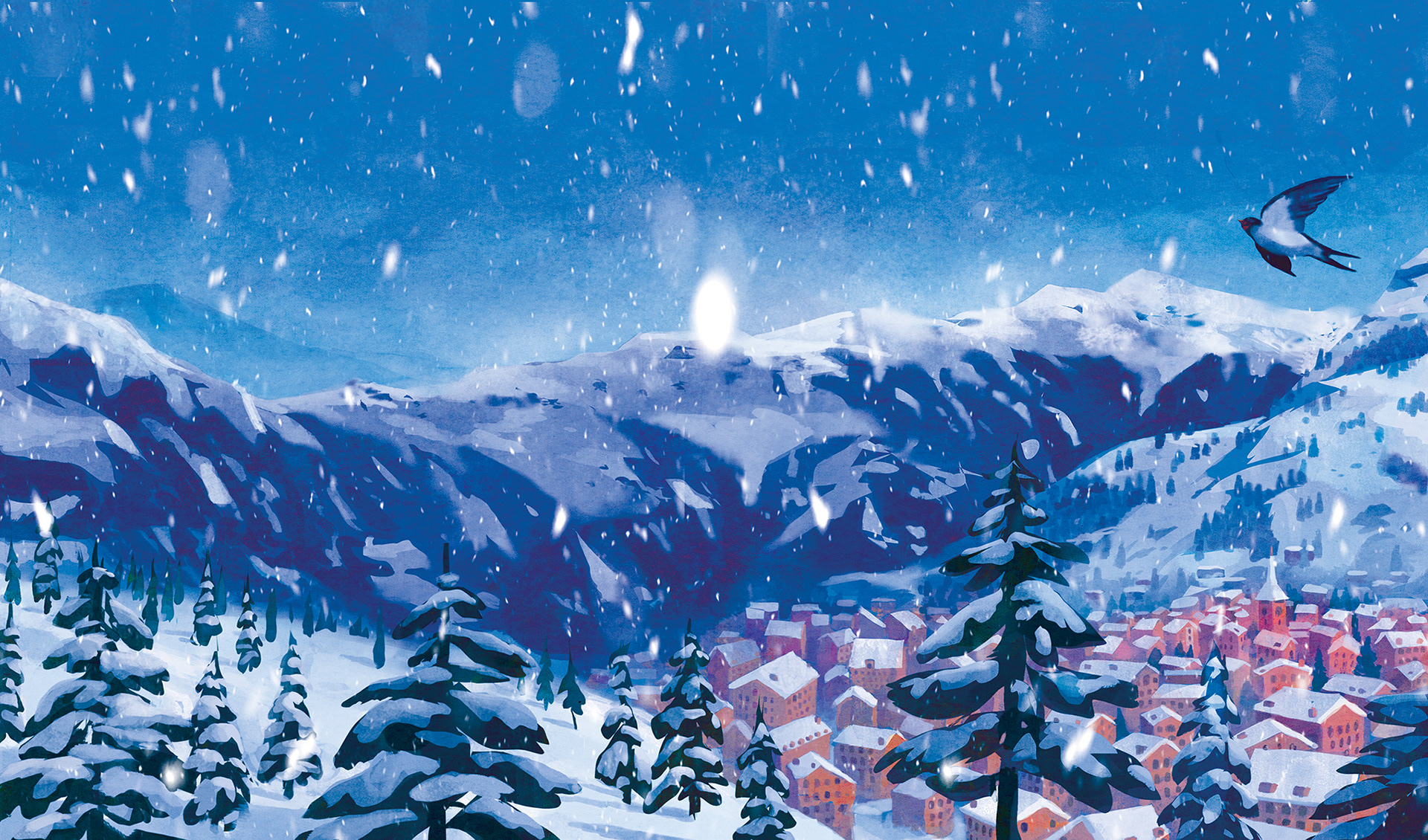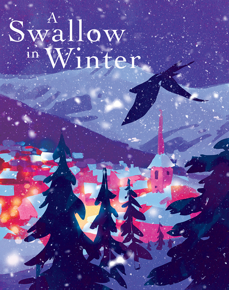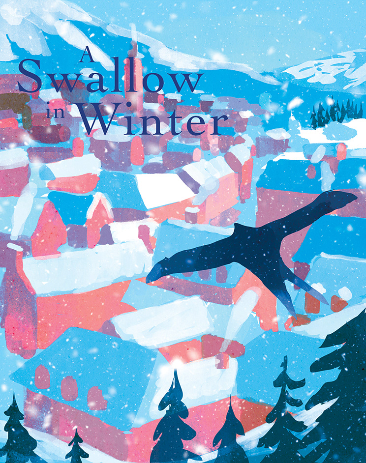 The cover for A swallow in winter, the English edition, to be published by Walker Books, of Quelqu'un m'attend derrière la neige written by Timothée de Fombelle with my illustrations, originally published by Gallimard Jeunesse in 2019.