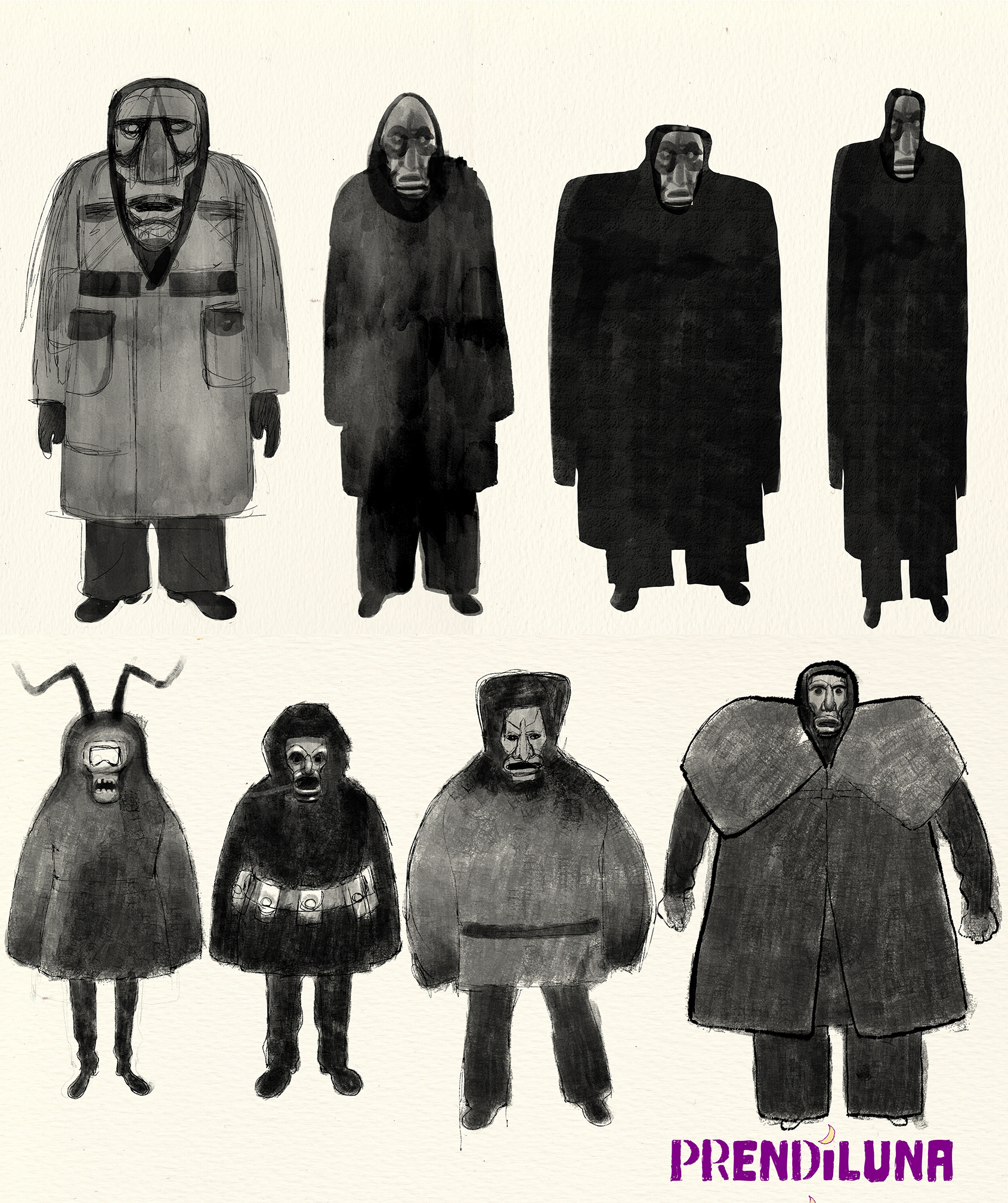 Some of the preliminary character design and visual development work I did for an unannounced animated feature.