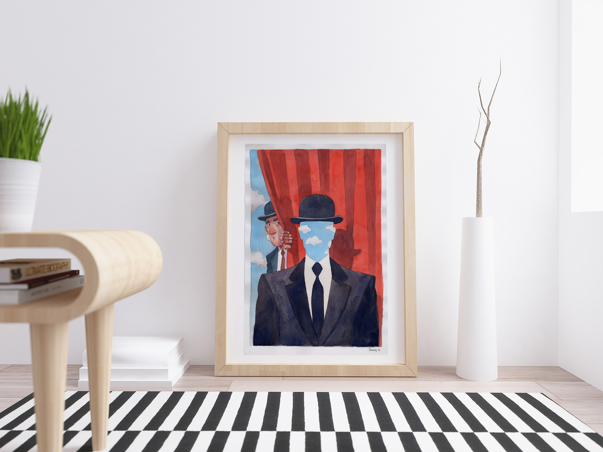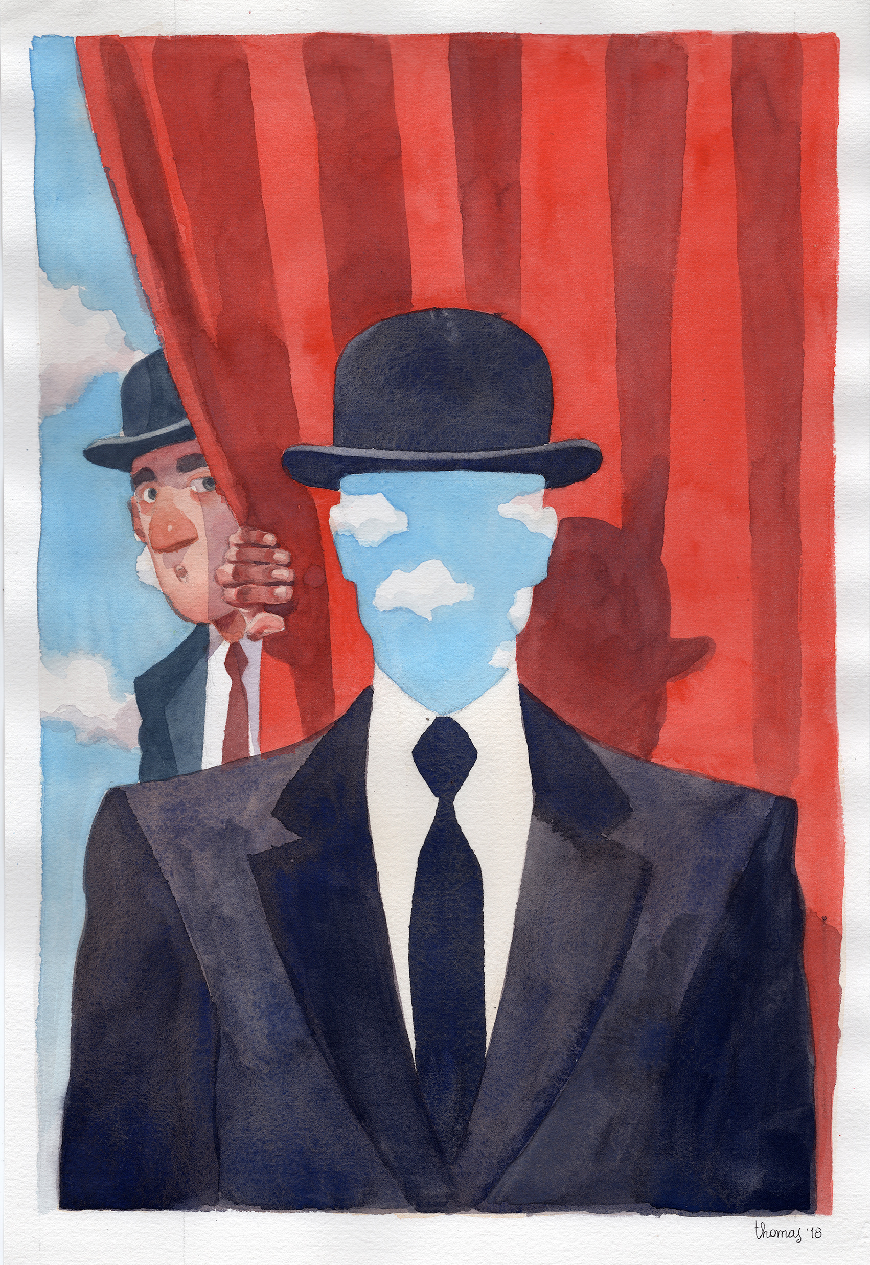 This the traditional version of the cover of my graphic novel "Magritte- Ceci n'est pas une biographie". Watercolours and Gouaches on paper 29x42cm - Euro 380 - USD 420 - AUD 620 - Add Euro 15- USD 18 - AUD 20 for international shipping