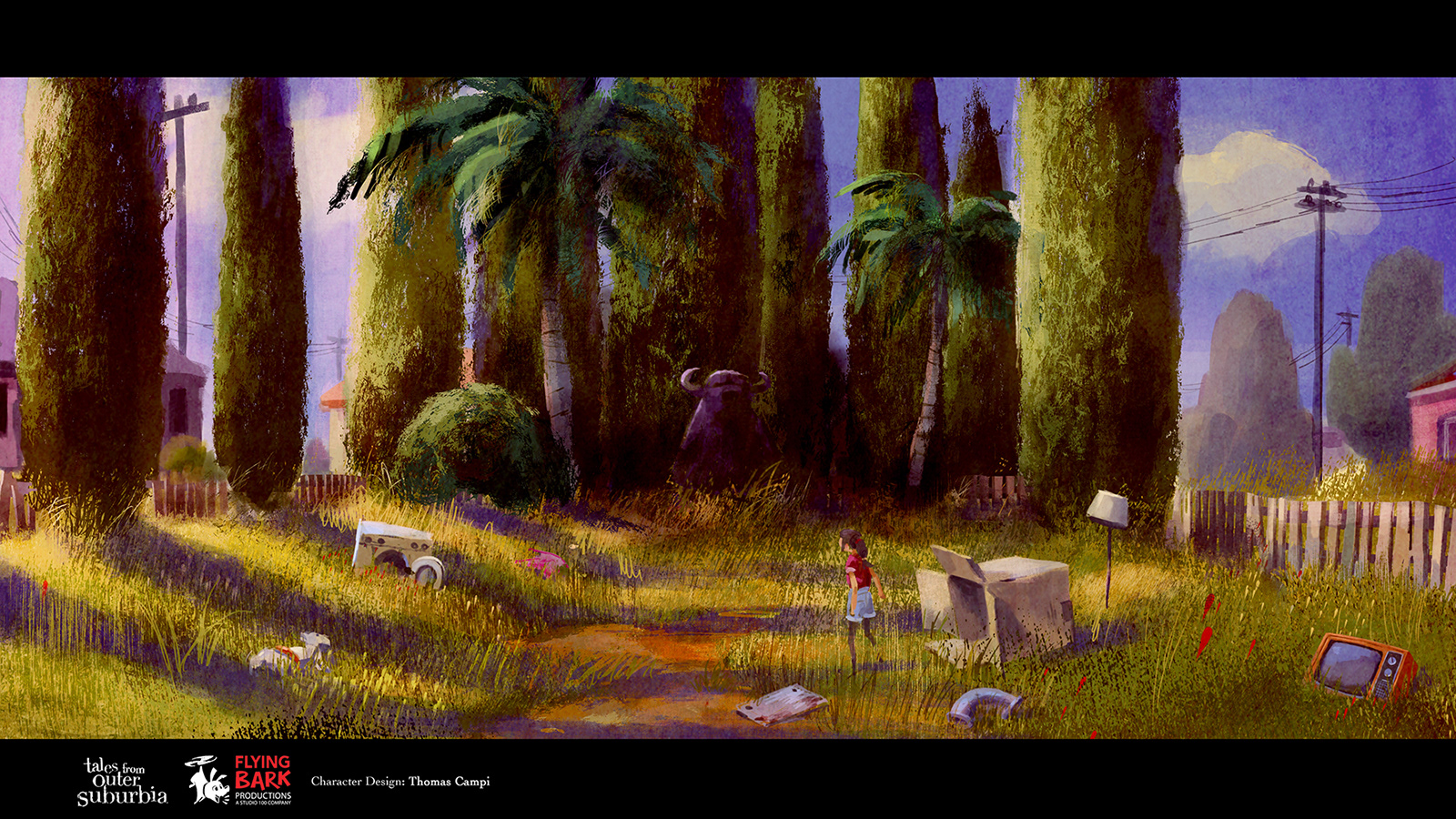 Visual development for the teaser of the animated TV series created by Flying Bark Productions under development "Tales from outer suburbia" based on Shaun Tan's book.